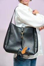 Borsa a tracolla in pelle nera martellata con ciondolo decorativo