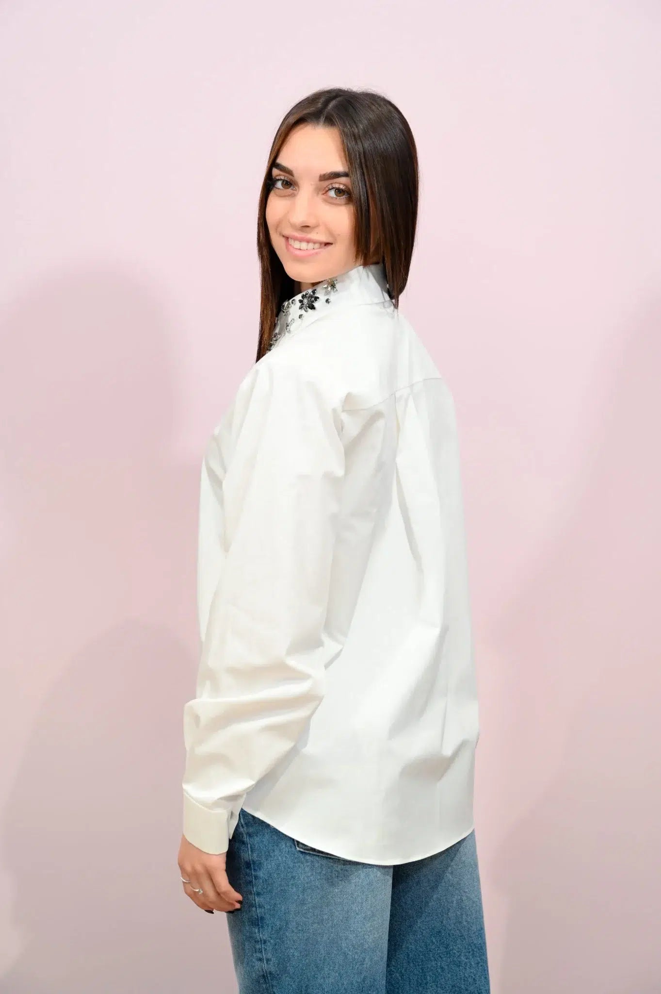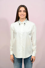 Camicia Bianca Slim Fit con Ricami e Strass Ruebsquit