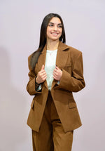 Raffinata e di tendenza, la Blazer Doppiopetto King di Rue8squit, in una calda tonalità di suede tabacco, è il capo must-have per ogni guardaroba moderno. La giacca è caratterizzata da una struttura a trapezio che esalta la silhouette, spalline che donano un aspetto strutturato e una vestibilità over per un comfort assoluto. La cura artigianale e il design italiano si uniscono per creare un capo versatile, perfetto sia per occasioni eleganti che per outfit casual-chic. Realizzata con materiali di alta qualità, garantisce stile e durata nel tempo.