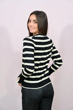 Cardigan a Righe con Bottoni Perle Two Way nero-panna